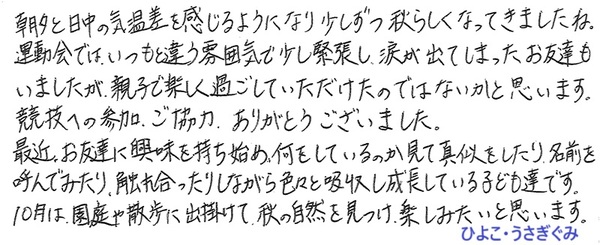 保護者の皆様、朝早くからご準備していただき心からありがとうございました。