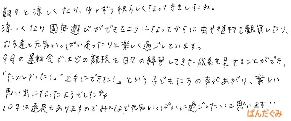 どんぐりや秋ならではの葉っぱをみつけたりと思いきり遊びましたね。