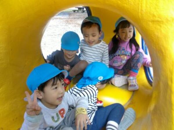 長い滑り台を何回もすべって元気いっぱいの子どもたち!